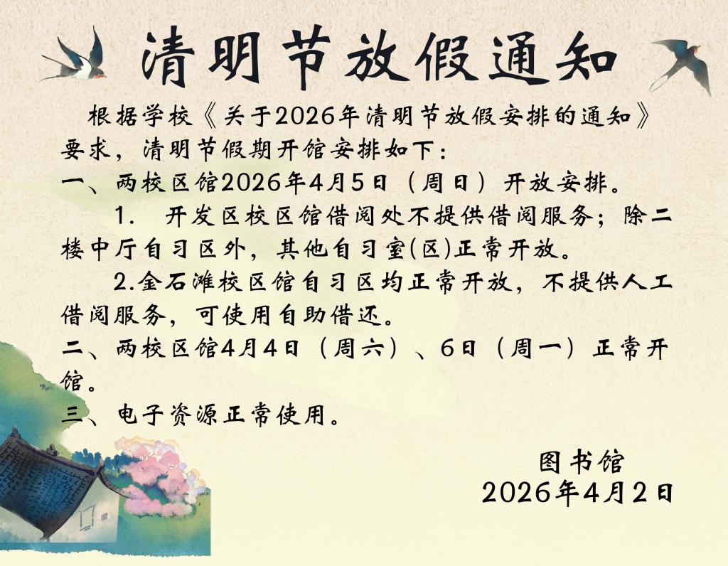 2026年清明开馆通知